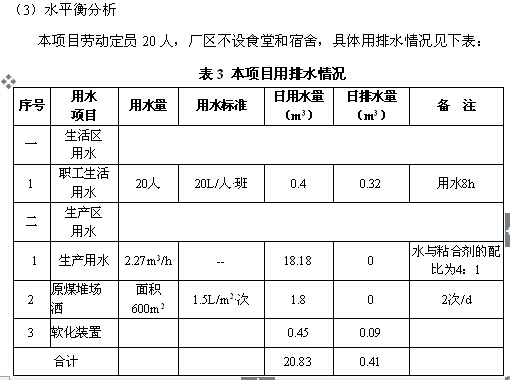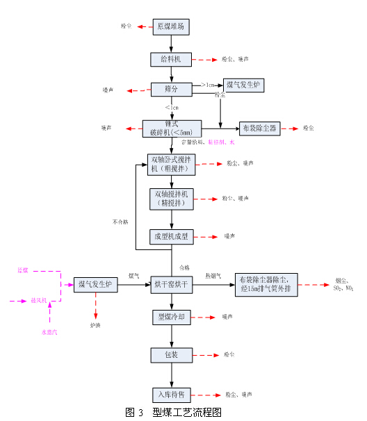 | 型煤 | 原煤 | 10萬t/a | 附近煤礦供給,本項目篩分<1cm的原煤 |