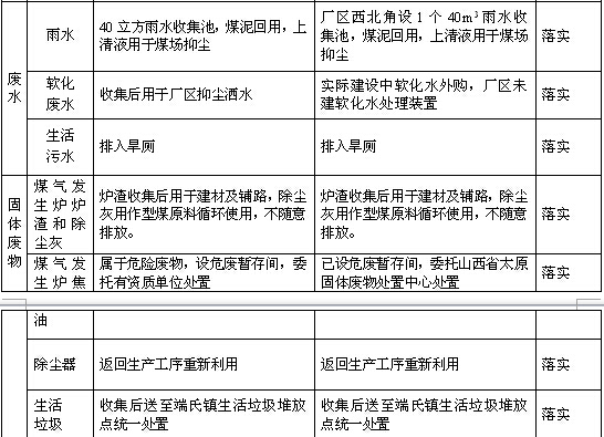 (1)要求盡快完成軟化水處理裝置的建設(shè)。對出廠與端氏煤礦運矸路之間的道路進行全部硬化。加強廠區(qū)綠化工作。