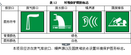 根據(jù)《環(huán)境保護圖形標(biāo)志排放口(源)》(GB15562.1-1995)及《環(huán)境保護圖形標(biāo)志固體廢物貯存(處置)場》(GB15562.2-1995)中有關(guān)規(guī)定,在廠區(qū)內(nèi)“三廢”及噪聲排放點設(shè)置標(biāo)志牌,標(biāo)志見下表: