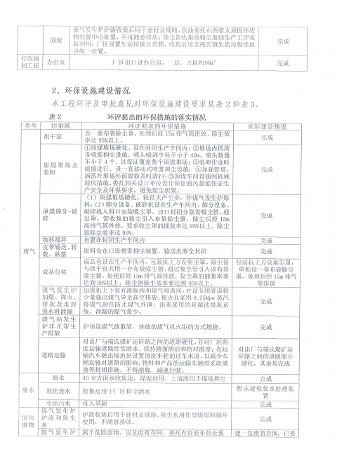 綜上所述,沁水縣誠友型煤有限公司在建設(shè)過程中已基本落實了環(huán)評及其批復(fù)要求,符合驗收條件和要求,可以予以驗收。